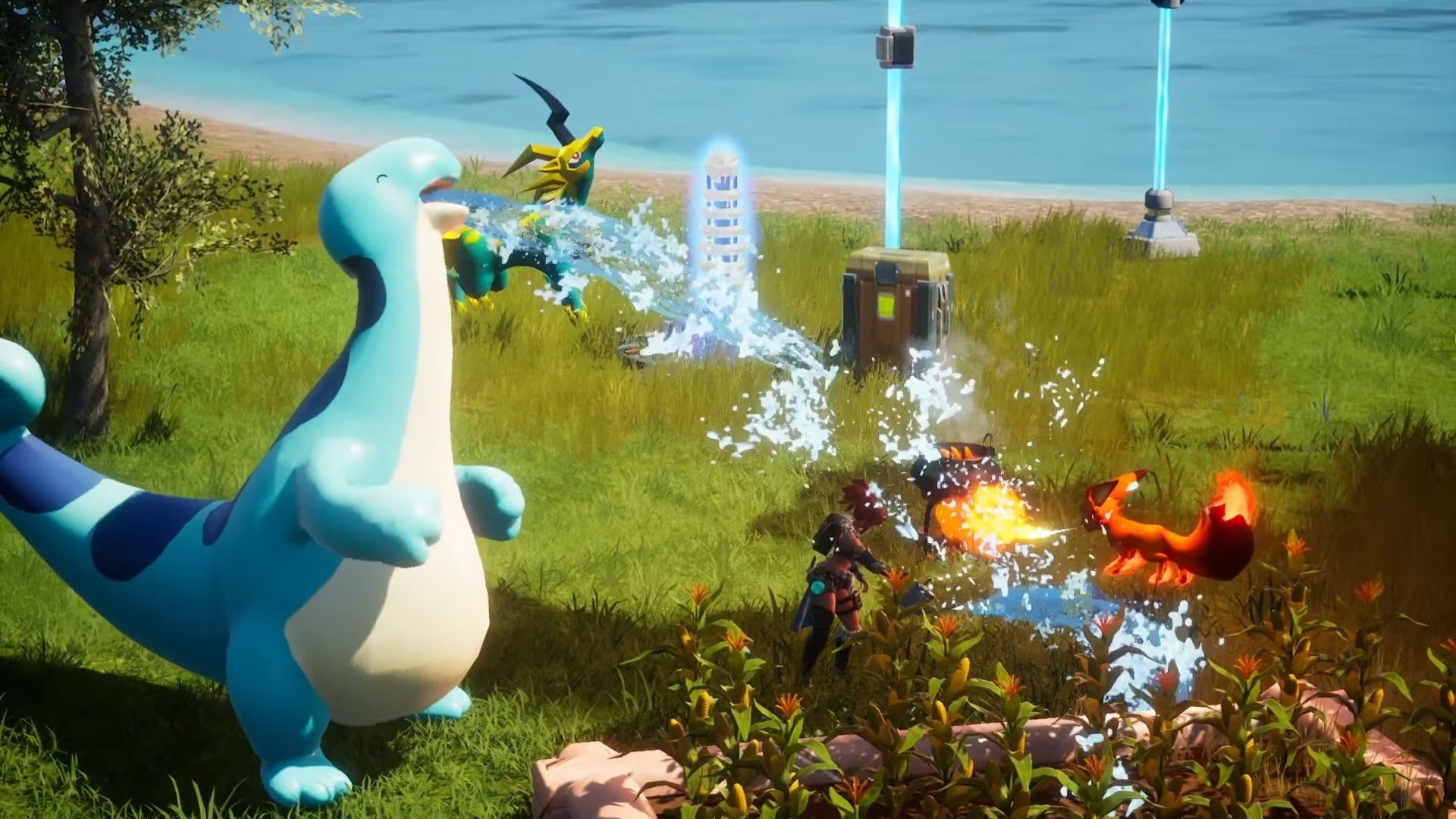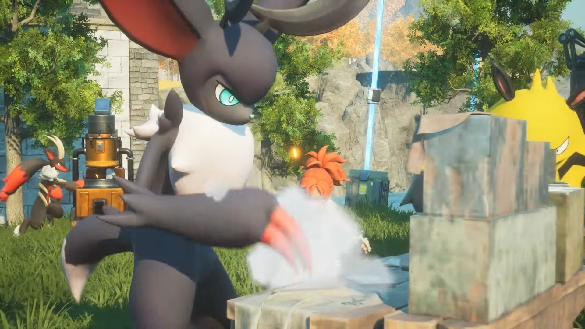 - Способности: Как и многие приятели водного типа, Теафант не только сбрасывает жидкости Pal, но и идеально подходит для полива любых культур, которые есть на вашей базе. У него также есть навык «Успокаивающий душ», который может исцелить как вас, так и ваших друзей.